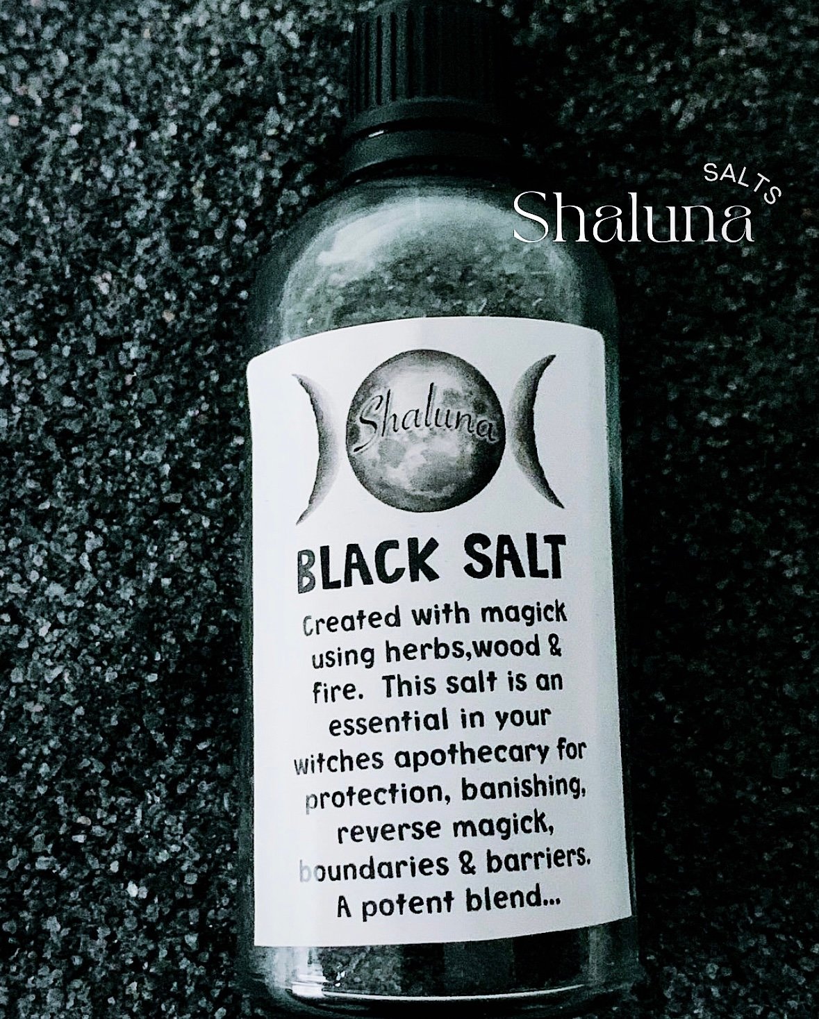 Black Salt - This salt is an essential for protection, banishing, reverse magick, boundaries & barriers. Created with using herbs, wood & fire - a potent blend.
